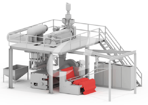 熔噴布的主要設(shè)備構(gòu)成: 上料機(jī)、螺桿擠出機(jī)、計(jì)量泵、熔噴模頭組合件、羅茨風(fēng)機(jī)、空氣加熱器、接收裝置、卷繞裝置。 生產(chǎn)聚酯等原料,還需要切片干燥裝置。生產(chǎn)輔助設(shè)備主要有模頭清潔爐、靜電施加裝置和噴霧裝置等。